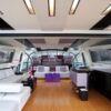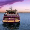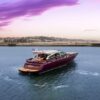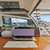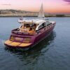Her distinctive purple hull and streamlined profile make a striking first impression, while her contemporary interior, finished in a sophisticated neutral palette, sets the tone for relaxed yet refined living.