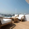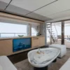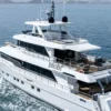 Indulge your senses and immerse yourself in luxury as you explore the Nomad 101’s enchanting spaces. From the upper deck forward lounge, where you can savor breathtaking views of the horizon, to the flybridge sun loungers, ideal for soaking up the sun in style, every moment aboard this yacht is an invitation to relaxation and enjoyment. Dine alfresco under the fully shaded aft cockpit, where culinary delights await, or gather with loved ones for a cozy family movie night in the main salon—where comfort and elegance converge seamlessly.