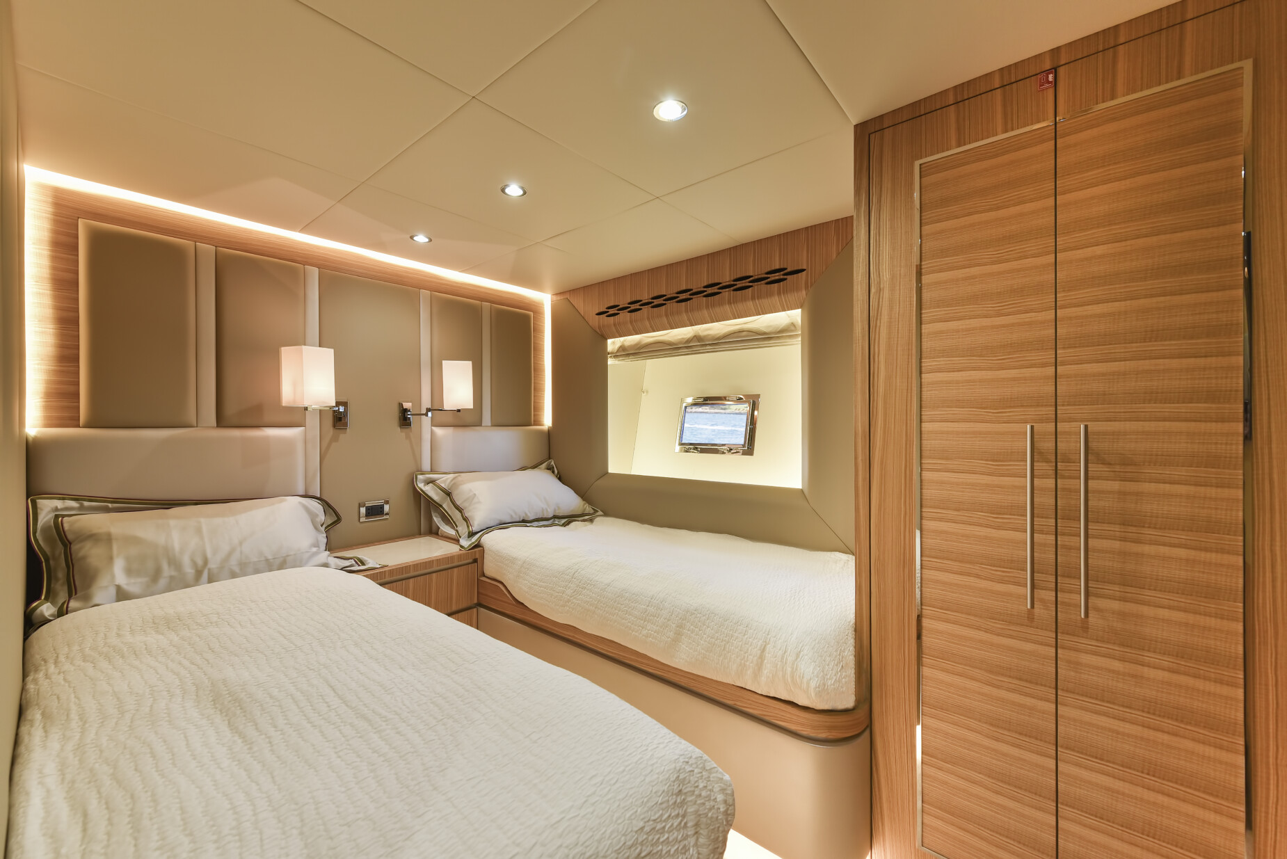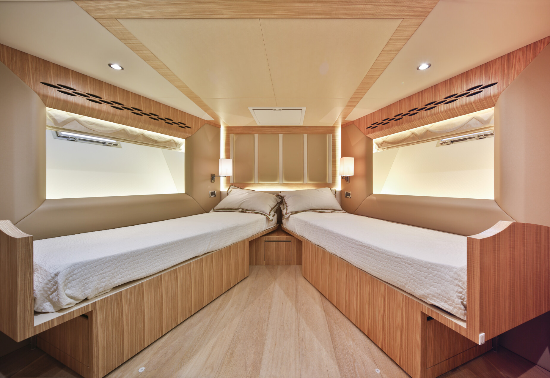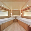 Step aboard, and you’ll immediately be captivated by the spaciousness and refinement that define every inch of this magnificent vessel. With expansive above and below-deck quarters, the Nomad 65 sets a new standard for indulgent living on the water. Three light and airy guest cabins beckon you to unwind in comfort, while two impeccably appointed crew cabins ensure that every detail of your voyage is attended to with the utmost care.