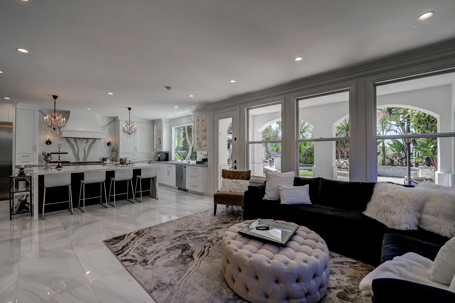 Entertain outdoors in the west-facing backyard with a built-in BBQ, spa, fireplace, shaded dining area, and serene courtyard with fountain. Enjoy easy access to hiking trails, golf, beaches, and downtown amenities.